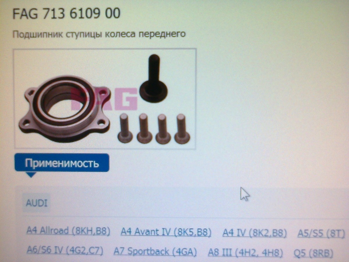 Нa b8 кузов задний ступичный подшипник идет: