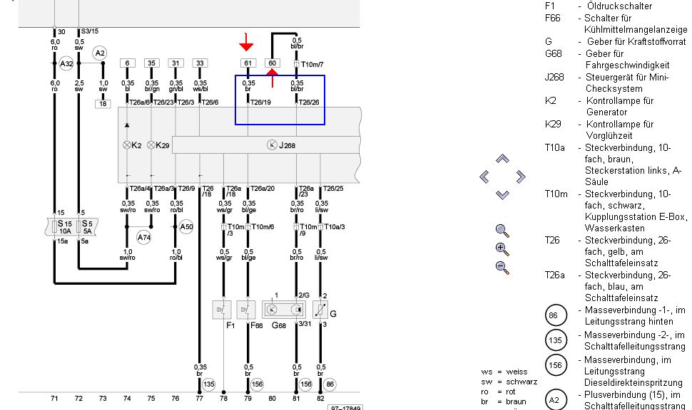 Так с этого места по подробней на каких номера пинов вы посадили датчик G2, на старом разъеме 26 пиновом он сидел на пинах 26 и 19 красная стрелка картинки ниже и не сидел одним концом на корпусе авто и вам их надо посадить как на картинках выше. Да еще не забываем хотя это не имеет принципиального значения что есть переходной разъемы в данной схеме это разъемы Т10 на которых тоже можно производить действия прозванивания причем разъеденяя устройства.