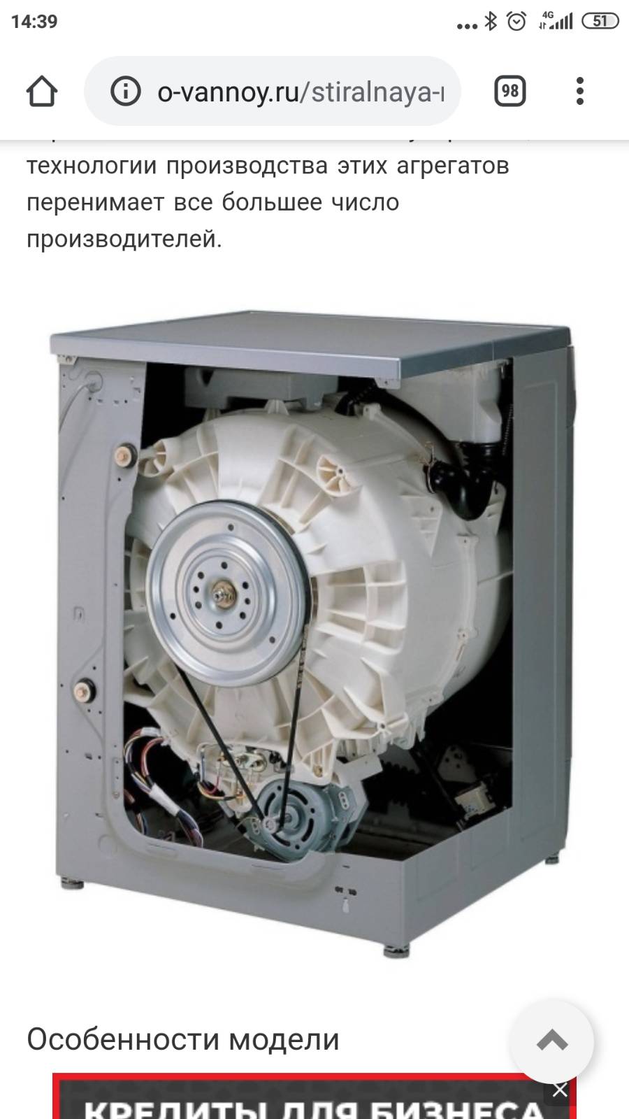 Основной особенностью двигателей этого типа является наличие специального устройства – инвертора (частотного преобразователя), который регулирует скорость и частоту оборотов барабана, преобразуя ток из постоянного в переменный.