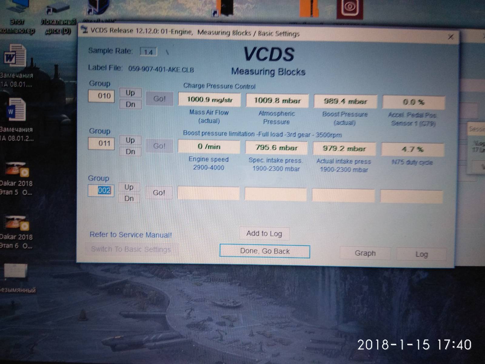 Просканил компом 11 группу параметров на заведенной машине на холостых оборотах: и вот тут стали видны странные показания датчика давления наддува G71. Заданное значение показывает 795.6 mbar, а фактическое с датчика 989 mbar. Разница довольно не маленькая. Причем, на незаведенном двигателе и на заведенном показания с датчика G71 практически одинаковые. Есть у кого показания эти на исправной такой же машине, хочу сравнить.