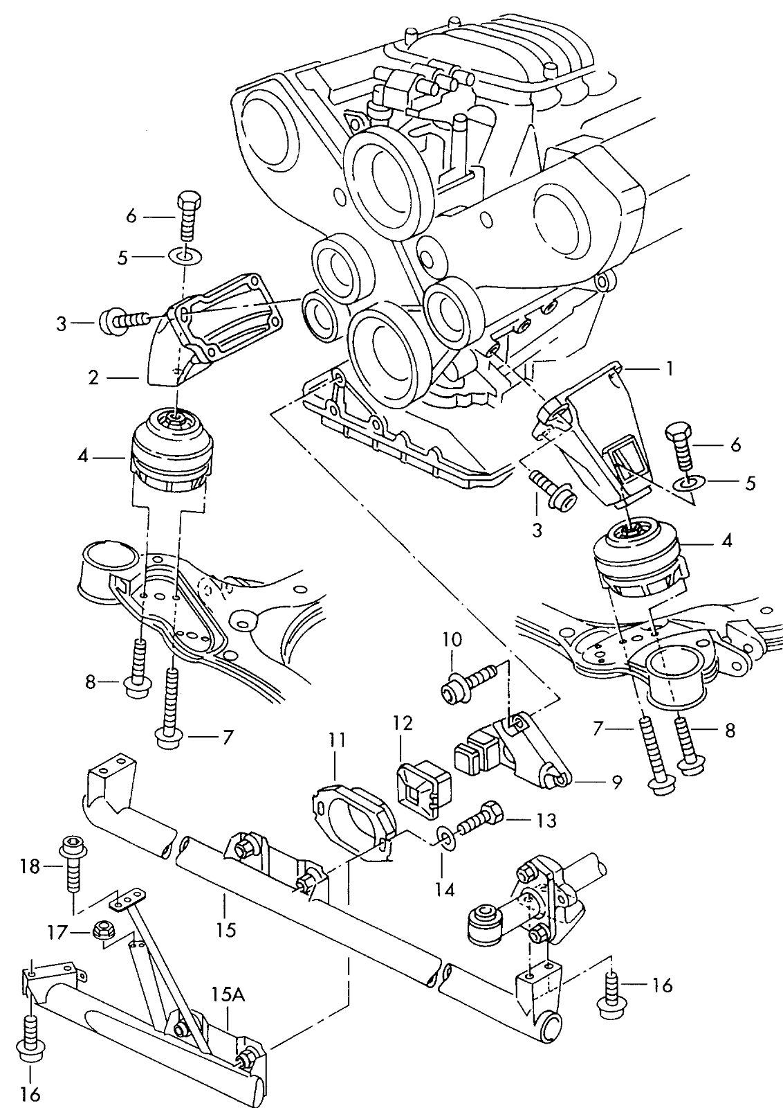 А подушка как стоит горизонтально или под наклоном. на А8 мотор снимали такой лет 7 назад не помню уже.
