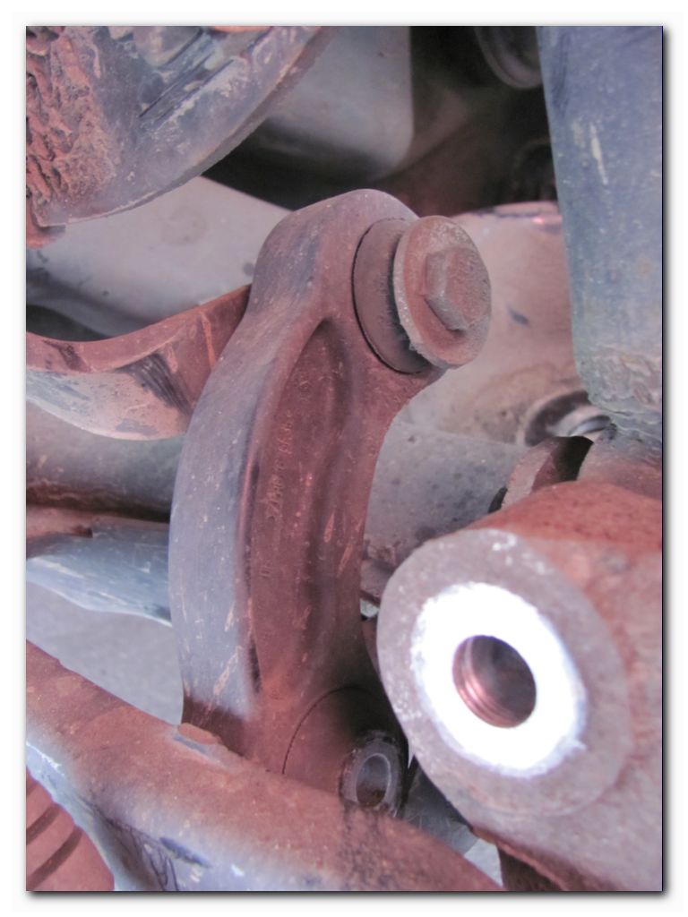 С болтом амортизатора все понятно. Болт тяги стабилизатора выкручивается из приваренной к подрамнику гайки. Т.о. сама гайка неподвижная.