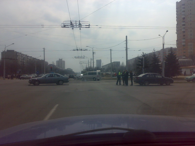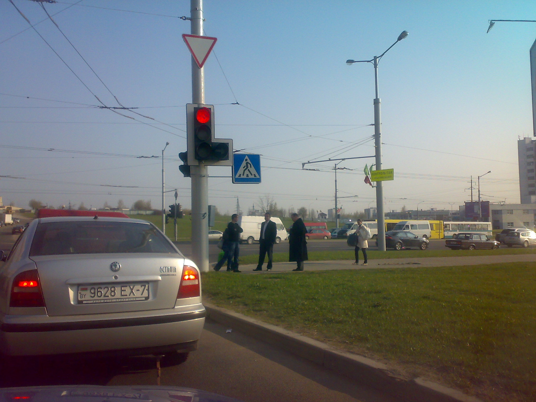 Тетку знакомую сбила мазда при переходе бывш проспекта Машерова, от стеллы переходила по переходу. Мазда поворачивала с бывшей Иерусалимской, в третий ряд, и ее сбила. Менты стояли возле стеллы и скорую вызывали они.