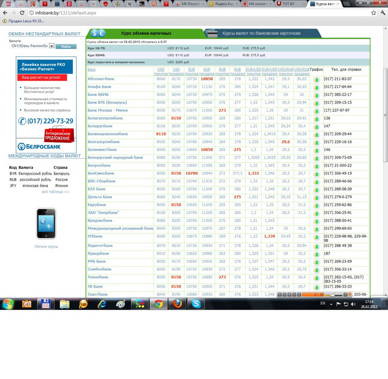 Привожу скриншот курсов на infobank"е за 25.02 9 утра, чтобы не быть голословным!