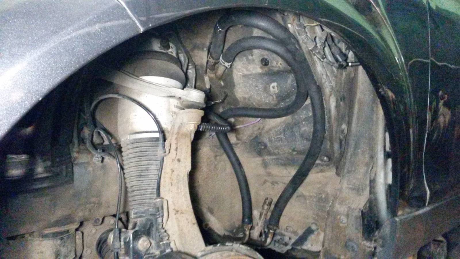 д) Сама вебаста крепится к креплению на 5 болтах и шлангах. Откручиваем 2 со стороны крыла. В этом случае ухо крепления остается прикрученным к нерж пластине, а пластина крепится к второму уху крепления на одной заклепке. Аккуратно отгибаем крепление на себя. После этого появляется доступ ко всем штекерам. Ухо после выкручивания болтов возвращается в исходное положение пассатижами. Выкручиваем еще 3 болта на которых крепится вебаста со стороны моторного отсека.