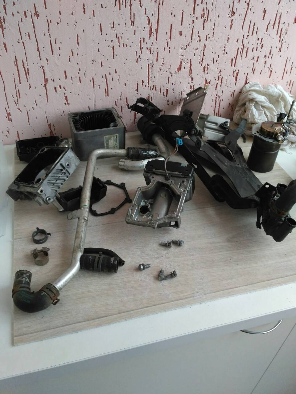 е) Шланги. Мне удобно само зажимные хомуты снимать с помощью разводного трубного ключа с тонгими губками. Шланг достаточно снять один сверху, второй по счету справа на лево. Он идет на выпускной патрубок вебасты. Слить ОЖ(что сольется). Еще один шланг на вебсасту идет от насоса ОЖ, г-образный. Его тоже акуратно стянуть, слить ОЖ. Что-то разольется но не критично. Закольцевать. Получаем что почти все трубки + насос ОЖ остануться висеть на авто.
