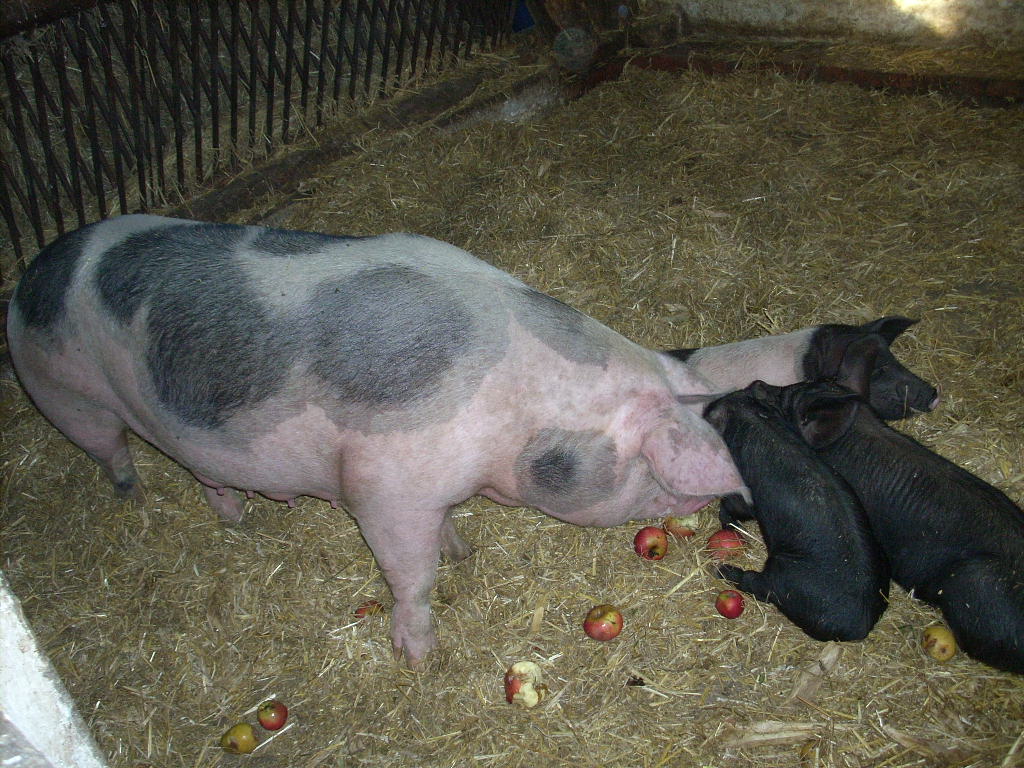 Заглянем в свинарник. Хайко решил начать разводить старо-немецкую породу свиней обладающих интересной структурой мяса и сала. До этого он пытался разводить овец , но как ни странно это оказалось весьма хлопотным занятием и отару пустили под нож. Закупив пару дородных свиноматок , он принялся их "размножать". Закупил сперму и следуя инструкции хорошенько "отстимулировал" пальцами породистых красоток. Доведя их до состояния "стояния" шприцем впрыскивает сперму. Интересный факт , свиньи не гадят по всему периметру , а строго в одно определённое место и поросята повторяют за матерью. Поэтому в стойле очень даже чисто и практически не воняет.