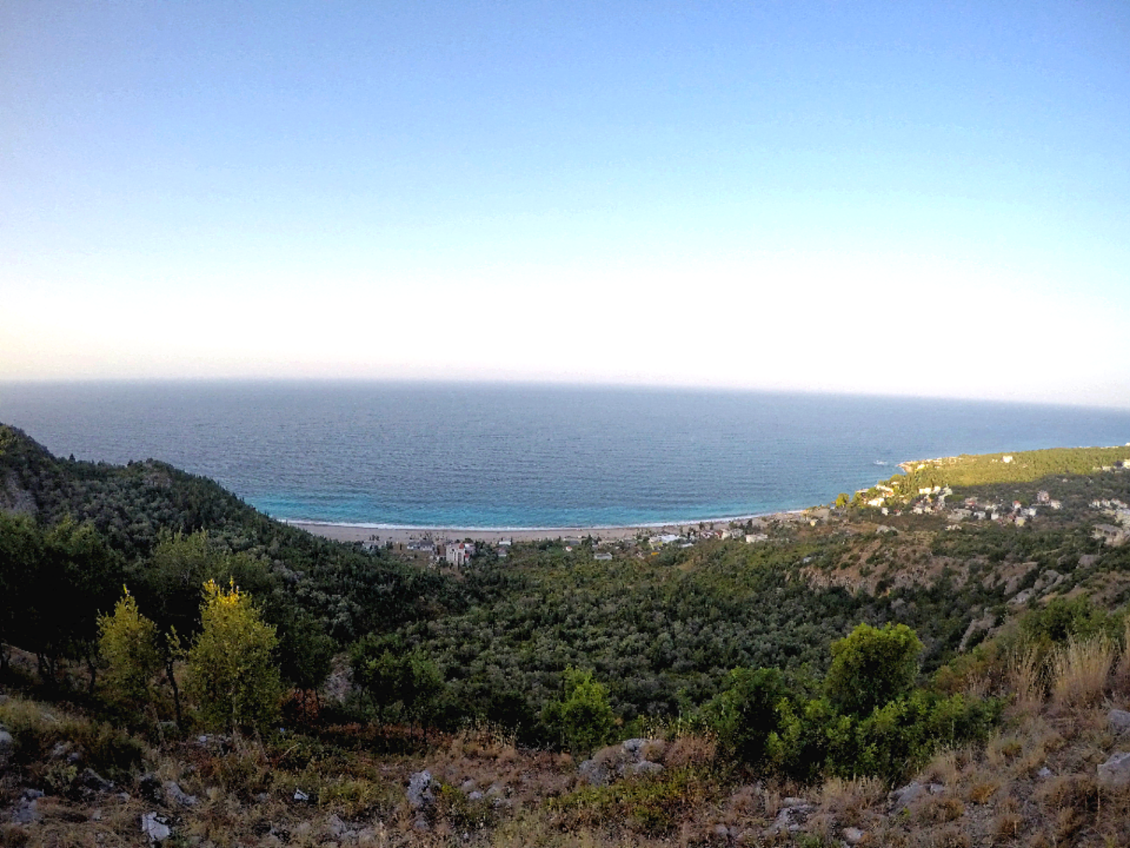 Влера, наша конечная точка на сегодня находится на уровне моря. Т.о. нам пришлось сбросить всю набранную высоту. Северный склон перевала встретил нас сильным ветром, который даже чуть не сдул Машку с дороги. Скорость велосипеда очень редко была ниже 40 км/с. На этом спуске я установил свой личный рекорд по скорости на велосипеде. Не знаю как вам назвать эту цифру, чтобы она ассоциировалась с великом