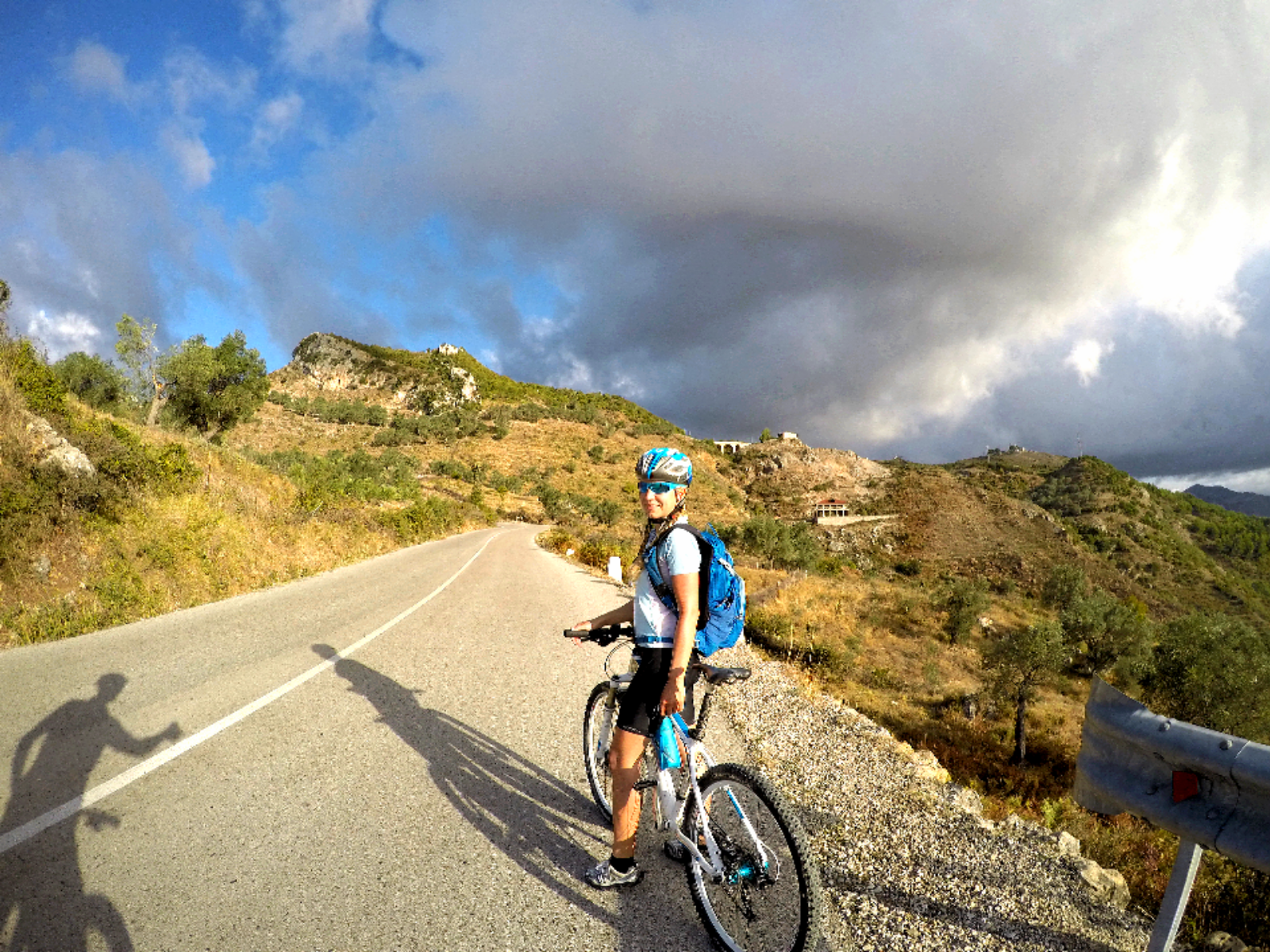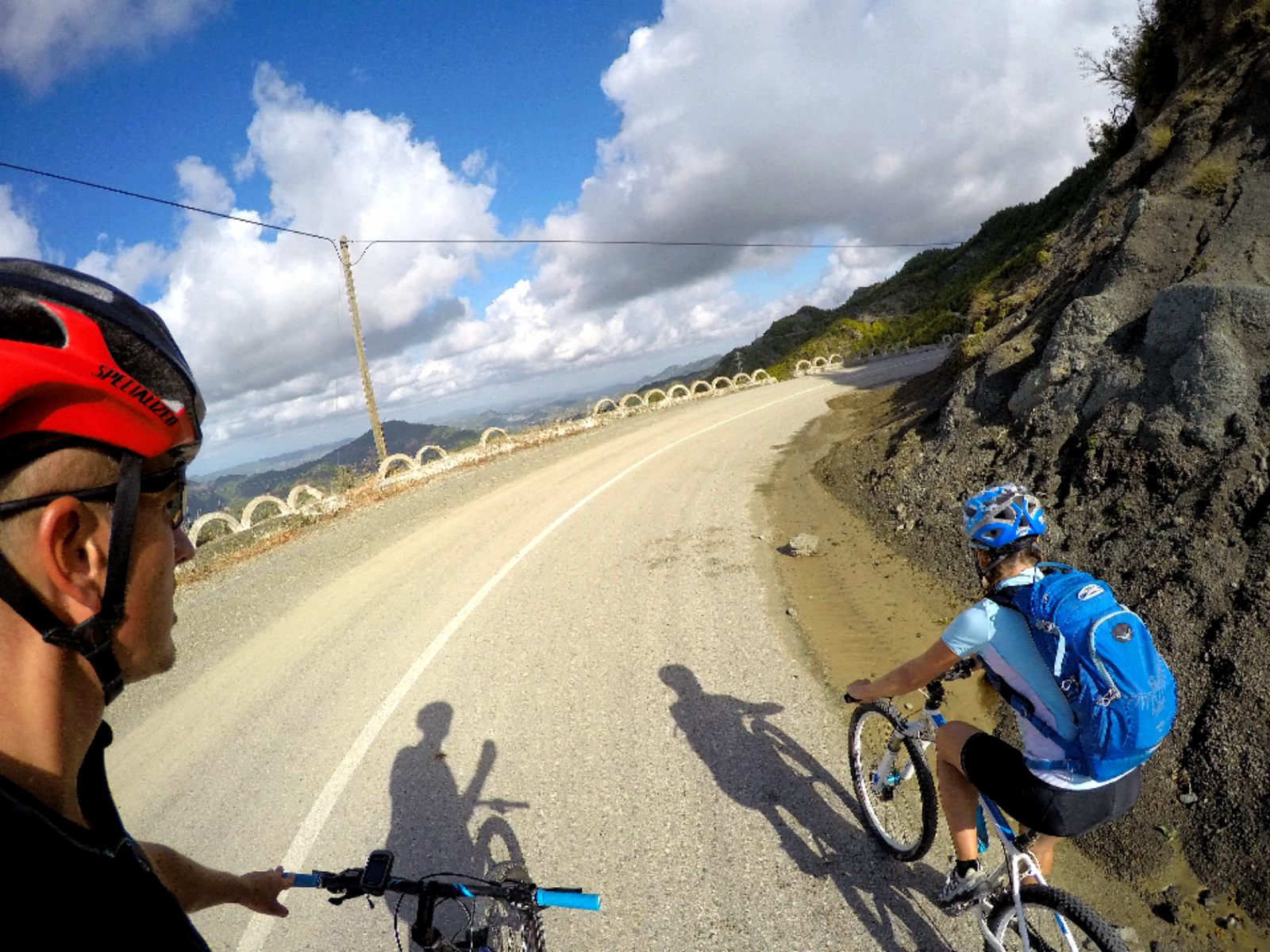 На одном из спусков по извилистому серпантину я чуть не прилег. Ехал со скоростью 40-45 км, на крутых поворотах скидывал до 25-30 и закладывал велик в повороты. На одном из таких моментов заднее колесо сорвало и оно пошло юзом. Велосипед начало ложить на бок, но я рефлекторно дернул рулем и каким-то чудом смог удержать железного коня. Дальше ехал поспокойнее с горок на поворотах