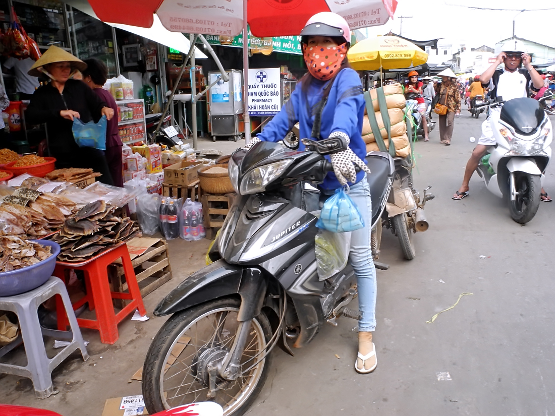 И еще одна особенность Вьетнама:все в масках. По началу прочитал что там из-за отсутствия дорог и красной пыли после одной поездки на байке одежда переходит в утиль а пыль из легких и ушей не выковыряешь-поэтому нужны маски, но потом понял, что это бзик братского народа. Рускоговорящая вьетнамка обьяснила, что люди так берегут кожу лица, что они не любят загорать и хотят чтобы их кожа оставалась белая и нежная. Поэтому все везде в масках, иногда в перчатках.