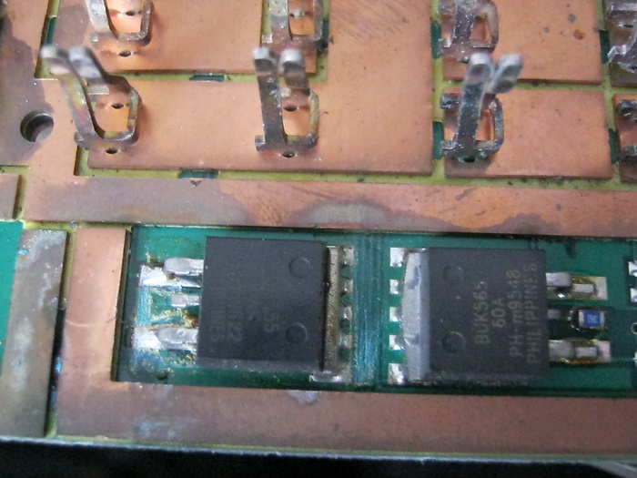 Пришлось заменить даже транзистор слева - видимо, не выдержала полупроводниковая душа "озеленения" контактов.