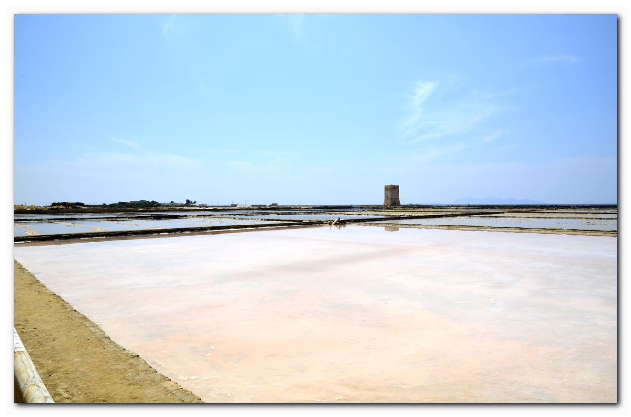 Посетив античный Эриче, я спустился по серпантину с горы и отправился в город Трапани. В городе меня интересовали знаменитые трапанийские солончаки и Музей соли (Museo del Sale). Финикийцы открыли простой способ производства соли из морской воды, который используется до сих пор. Рядом с морем на берегу организованы бассейны, которые заполняются морской водой с приливами.