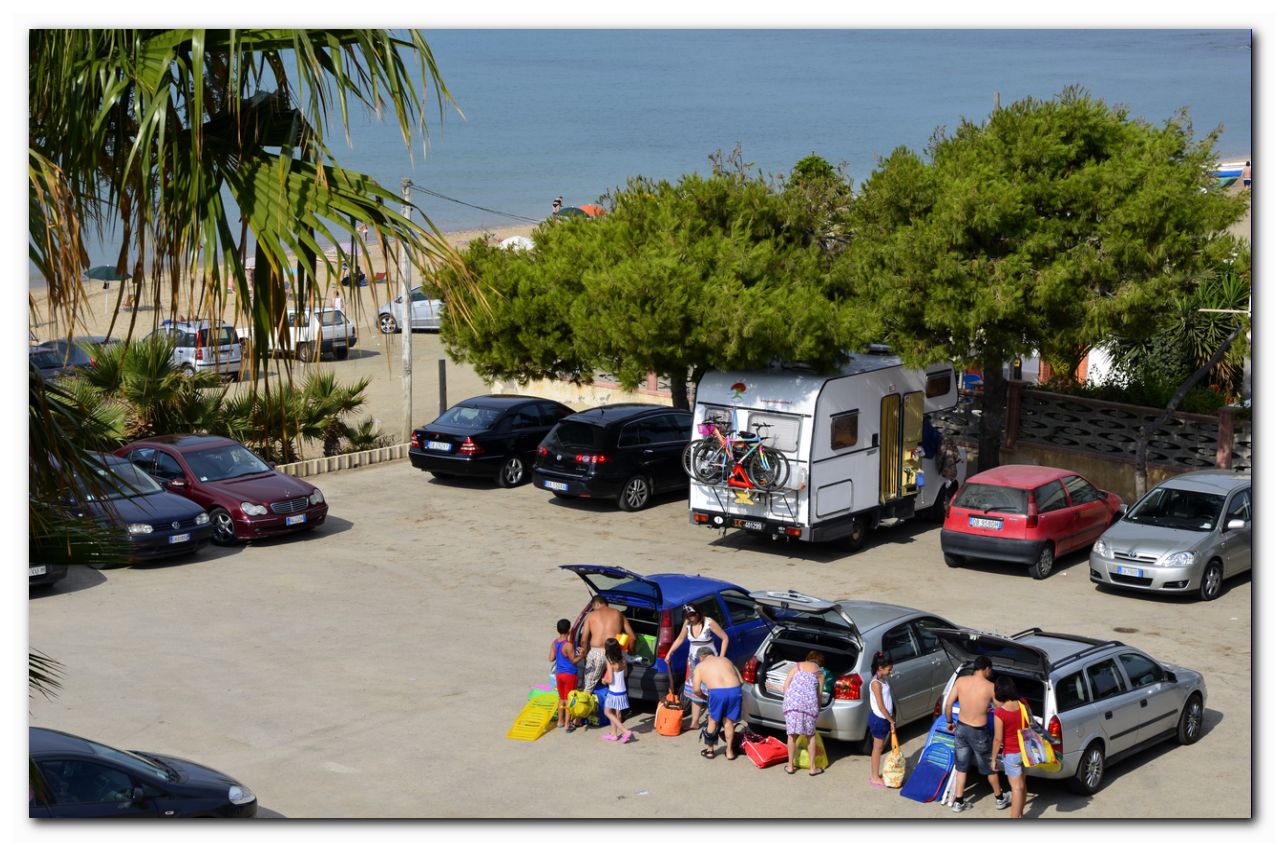 Приличное количество итальянцев приехало на своих авто на пляж. Со стороны было похоже, что проходят какие-то соревнования, например, кто быстрее возьмет все вещи и забъет место на общественном пляже.