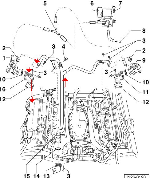 Советы не дам кроме как проверка всей вакумной системы и если все пучком то думаю забьешь ты ОГРОМАДНЫЙ БОЛТ на эту экологическую прибулду ввиду экономической стороны, второй совет если вся вакумная система управления клапан насос итд исправна то съем голов и чистка проходов воздуха до клапанов выхлопных, а там срани будет будь здоров вот она и не дает проходу воздуха, ну как утопающему можно попытатся схватится за соломенку поменять лямбды но это из практики мертвому припарка. Красные стрелки ход воздуха и видно что он проходит после комби клапанов в каналы гбц.