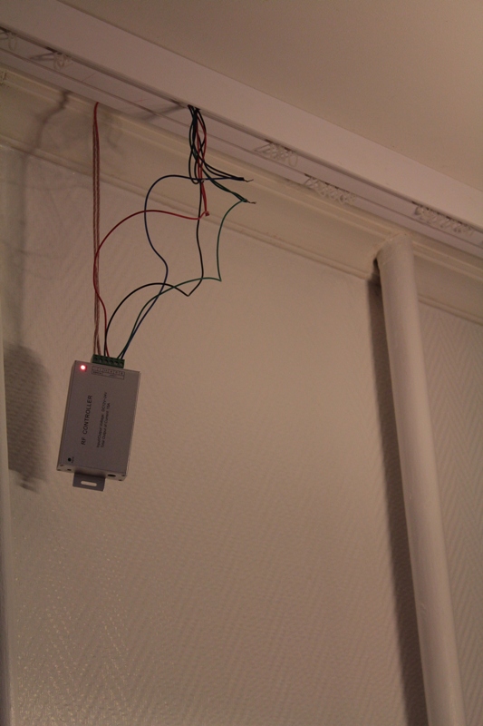 Мутить эту гирлянду-подсветку было задумано за потолочным карнизом. Карниз не интерьерный, а для занавесок, длиной около 7 метров.