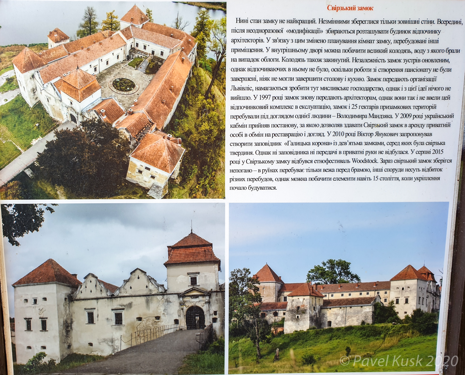 Красивый, находящий на возвышении у реки Южный Буг замок-крепость сразу бросился в глаза с дороги. Входной билет - 1,55 евро. На территории три музей и церковь. Также с одной стороны ведутся строительные работы, т.к. там обвалилась стена. В ходе работ находят археологические ценности, поэтому там же ими и занимаются специалисты.