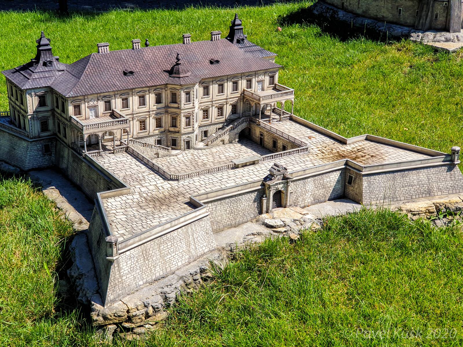 Но перед тем как приступить к осмотру замка я заглянул в музей миниатюр "Замки Украины". Вход стоил 1,24 евро. Территория выглядит так: