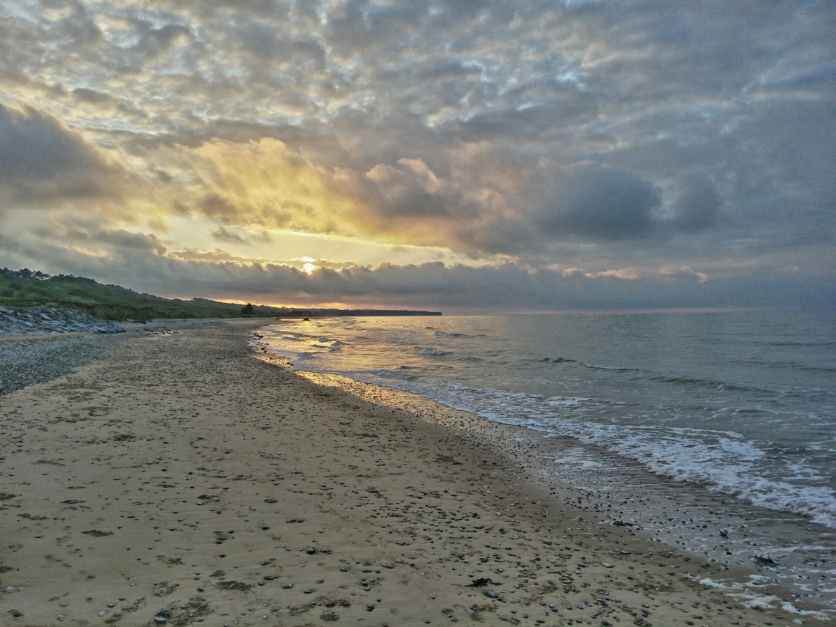 После завершения осмотра этих объектов, я решил отвезти семью на знаметый пляж "Omaha Beach", чтобы просто прогуляться по нему. Дорога от Байо заняла минут 25. Мы спустились к самому пляжу на авто и нам предстал вот такой вид:
