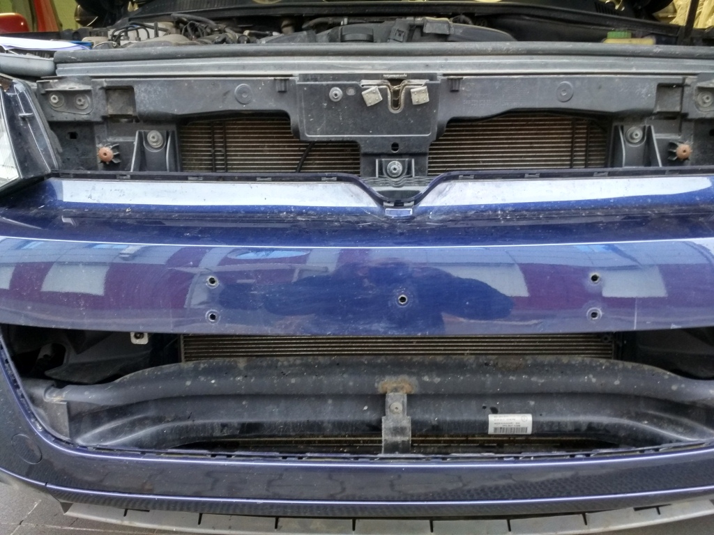 10. Внизу самого бампера есть большая решётка в спойлере. После снятия верхней и средней решёток, нижняя выдавливается внутрь, когда верхние будут сняты там все видно . Получаем такую картину