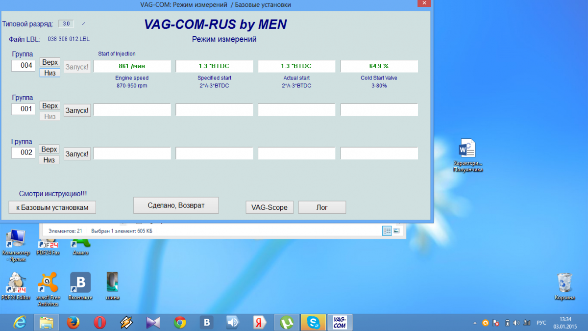 1 окно) Обороты холостого: 870 - 950