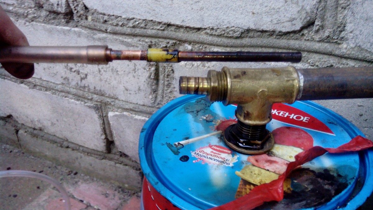 В штуцер вставляется медная трубка на глубину так, что бы её конец оказался на уровне