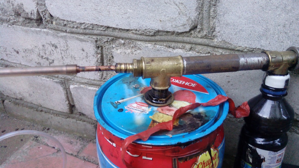 В штуцер вставляется медная трубка на глубину так, что бы её конец оказался на уровне