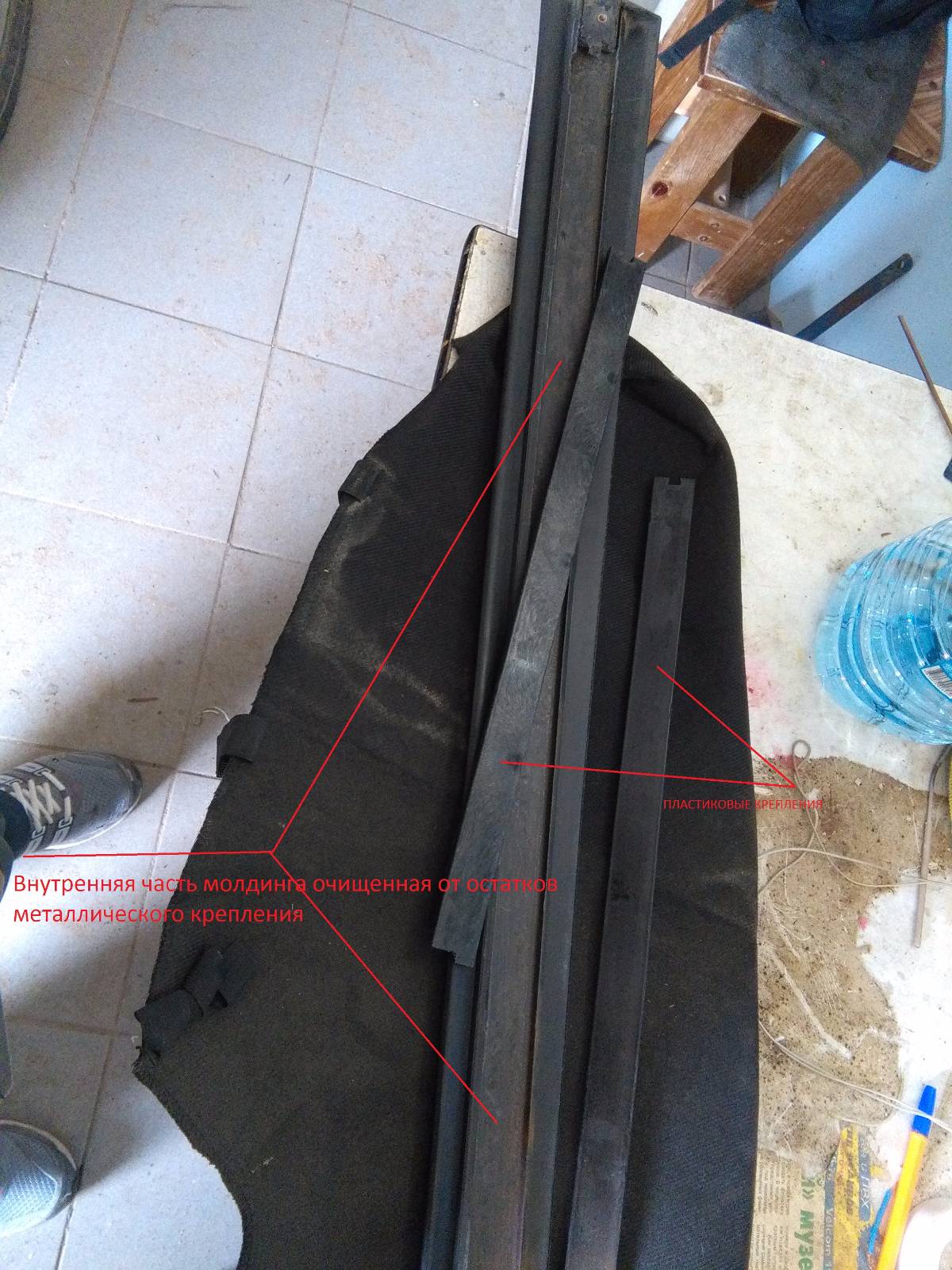Для придания жесткости конструкции в него вмонтирован П-образный металлический профиль, на котором держатся пластиковые направляющие, которые и задвигаются в металлические выступы в двери. Так вот причиной выпирания стала коррозия этого профиля, хоть он вроде и покрыт цинком, из-за чего его в некоторых местах прилично раздуло и молдинг пошел волнами. После удаления этого профиля (полностью) планирую по всей длине подложить и подклеить пластиковую пластину (чтобы толщина соответствовала убранному профилю) и наверх приклеить старые пластиковые направляющие. Сам молдинг выпрямить, если что, после удаления профиля кстати не проблема, а подогрев его феном, тем более.