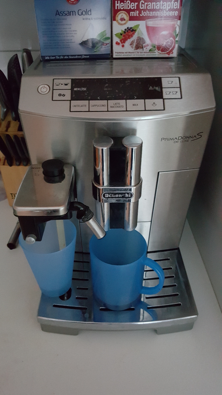 В кофемашинах ДэЛонги хорошо вот что: прекрасная варка кофе, благодаря множествам параметров (хорошая кофемолка, короткий тракт, фирменное ЗУ и т.д.) и хорошая функциональность, даже в не-топовых версиях и удобства. Отдельного упоминания заслуживает простое но качественное one-touch-cappuccino с полной промывкой тракта