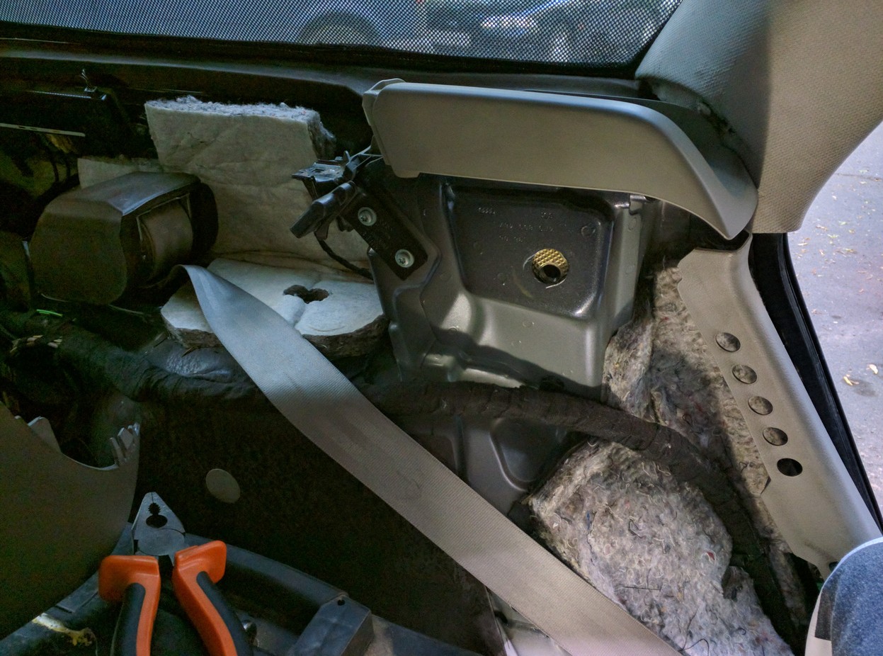 вечером сделаю фото, там нет ни чего, а провод уходит в стойку, пластиковая направляющая крепиться уже к кузову... там кругом металл