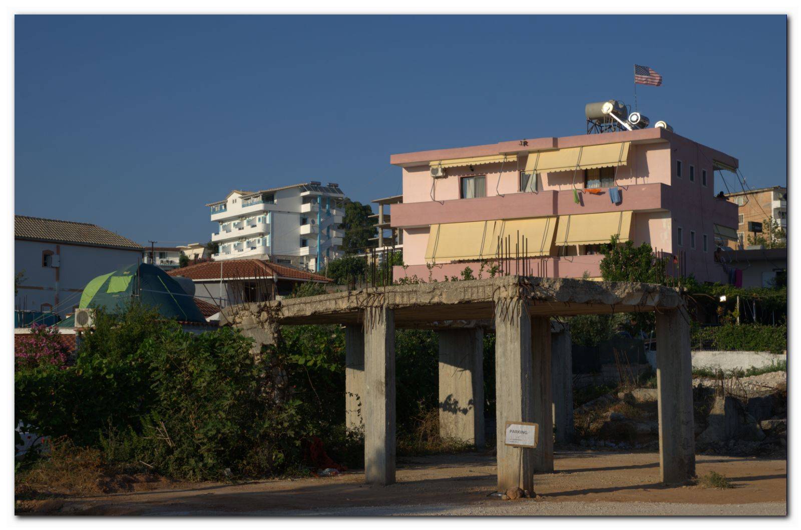 По Ксамилю есть одна очень выраженная албанская особенность - нелегальное строительство. Место популярное, земля дорогая, поэтому не все официально строились :) Но в этой ситуации правительство страны не закрыло глаза, а просто бульдозерами снесла все нелегальные постройки. Теперь в этом городке можно встретить вот такое: