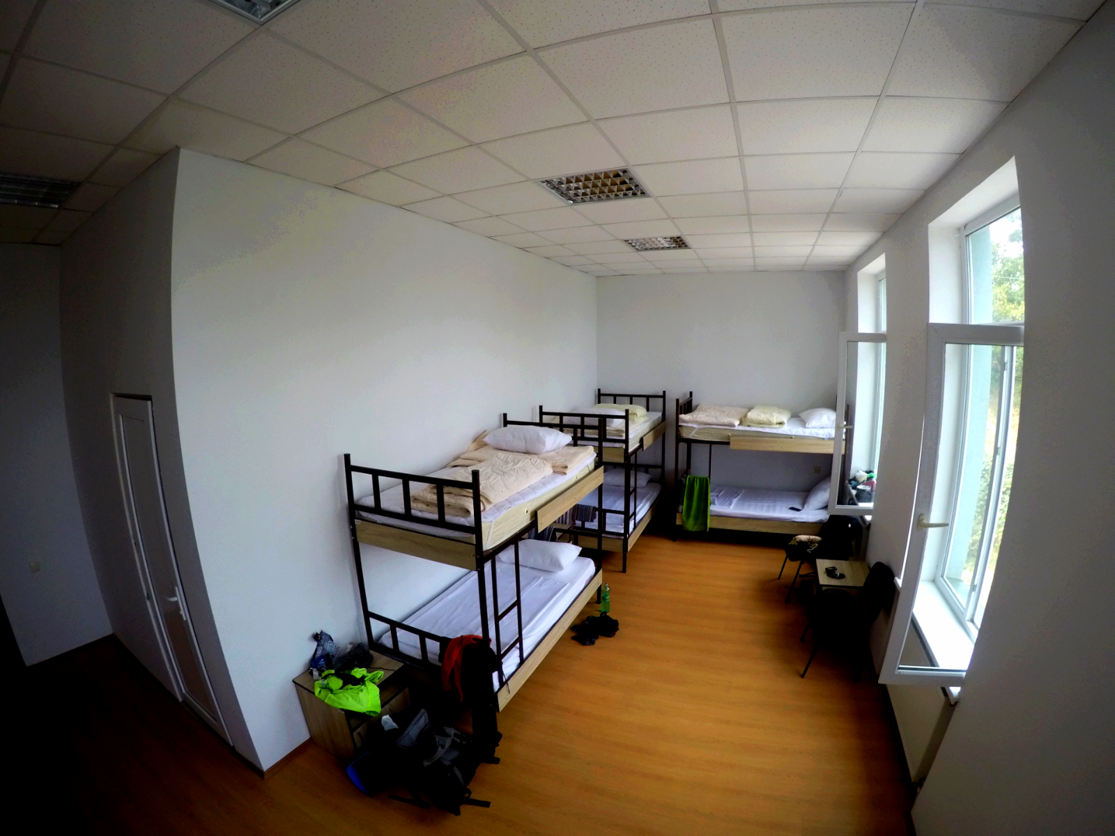замок в калитке этого дома. Завязывается разговор, я тоже подьезжаю на велике. За рулем сидит парень лет 25. Уточняет у нас чем может помочь. После нескольких звонков по мобильному и нашей душераздирающей истории он выдает идею. Место предполагаемого ночлега как раз по нашему маршруту и мы следуем по городу за его авто до нужного места. Через минут 5 приезжаем в здание с вывеской "Государственной университет". Сразу не понял какого мы за ним летели, чтобы книжку в библиотеке взять? Парень долго ведет беседу по телефону. Наконец из-за угла здания выходит дядька и говорит что можно преночевать за 20 GEL с человека в общежитии университета. Нам уже было пофиг все, поэтому без осмотра сразу соглашаемся. Общежитие оказалось новым, чистым номером, похожим на хостел.