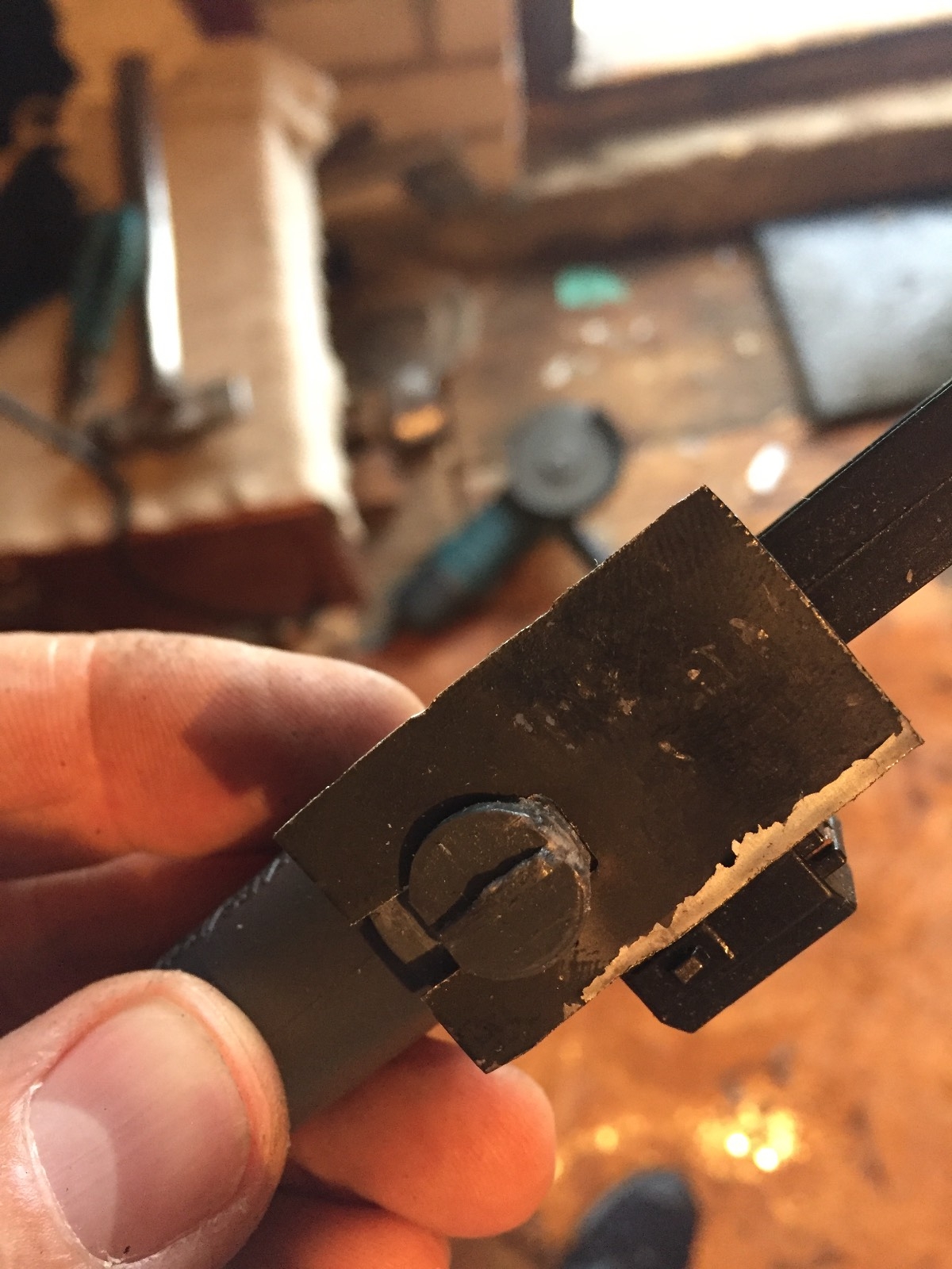 Так как усики тормоза были отломаны, то сначала по глупости я его просто взял и на мертво приклеил супер клеем.