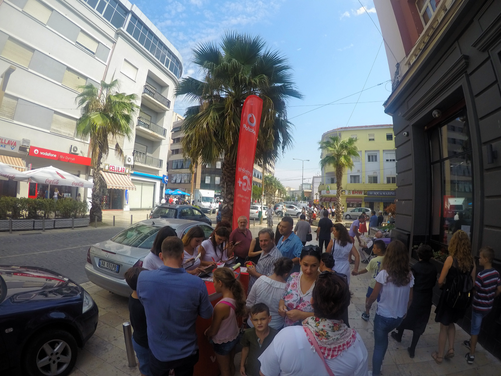 Пообщавшись на разные темы в рамках Беларусь-Албания, я пошел к выходу. На улице Машку облепили малолетние албанцы