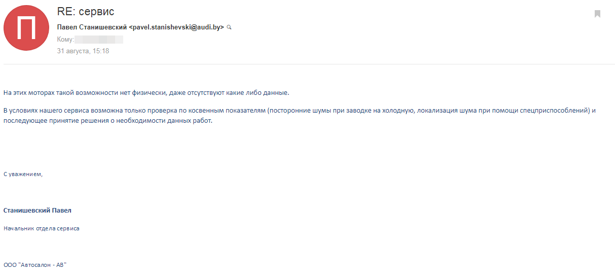 это же подтвердили официалы, когда я интересовался у них диагностикой, мол решение об износе принимается по совокупности косвенных признаков.