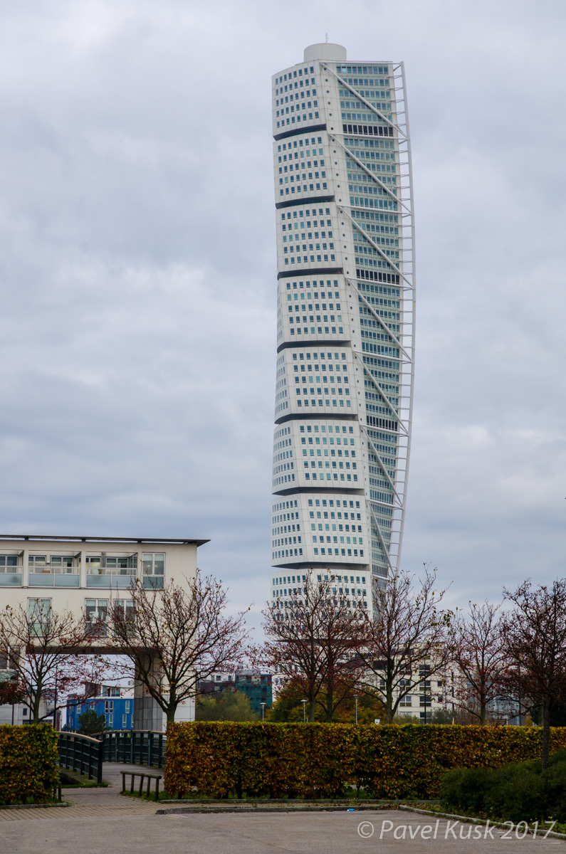 Сходили взглянуть на местный небоскреб Turning Torso. 190 метров и 54 этажа. Но меня это мало впечатляет в отличие от его дизайна: