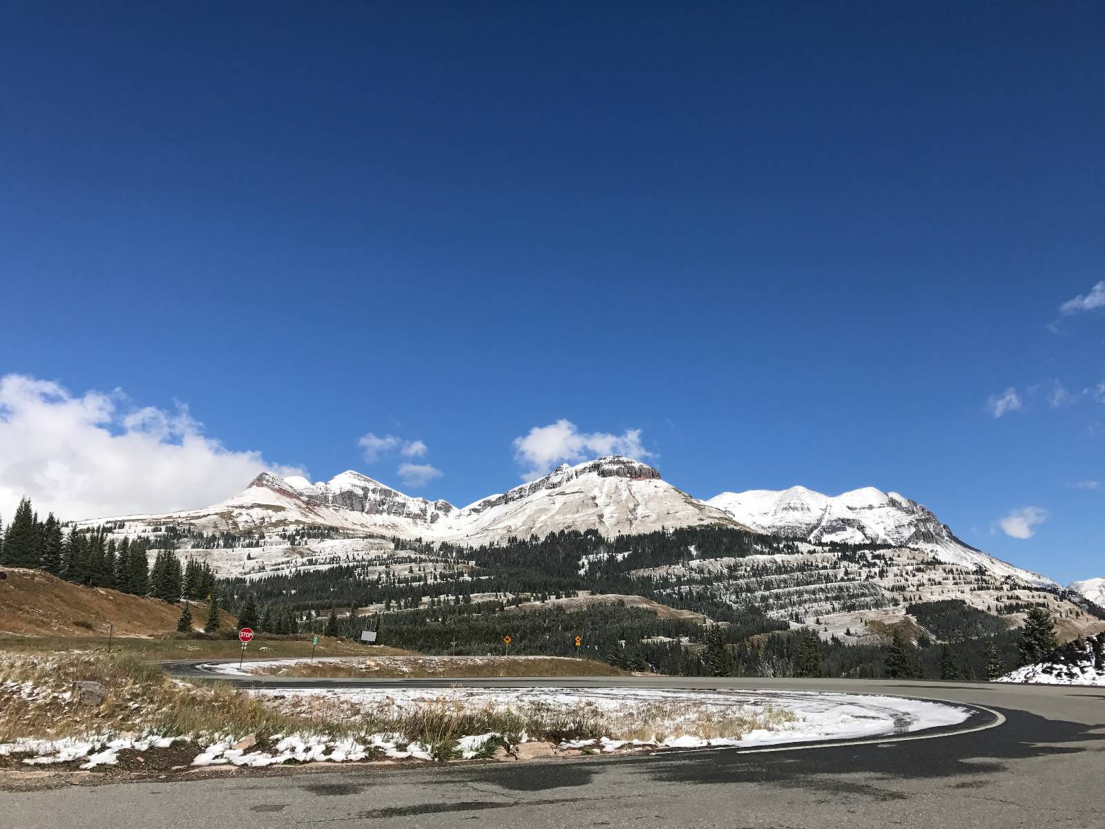 Позавтракав выдвинулись на авто на север по 550-му хайвэю. Фото не передадут всей красоты и глубины. Это нужно видеть в живую и в это время года – все эти контрасты, переходы из одной поры года в другую, горные речки и озера, скалы, обрывы…