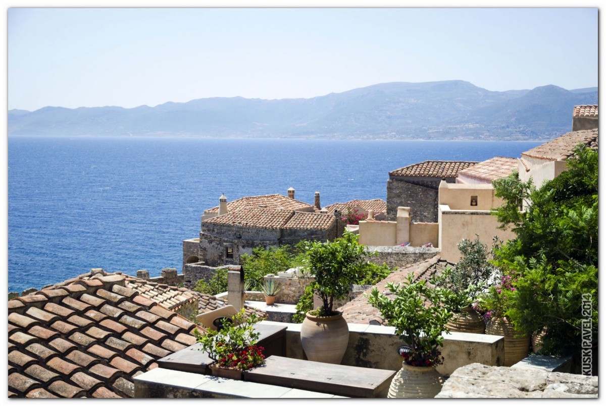 Из досье интернета: Скала, на которой расположен город была образована в 375 году в результате сильнейшего землетрясения. Монемвасия была основана в конце VI века и достигла своего расцвета в византийскую эпоху: ее неприступное положение и широкий обзор морского горизонта делал ее важнейшим городом Пелопоннеса. Впрочем, мировой известностью город был обязан не своей красотой или неприступными крепостными стенами. В 1463 г Монемвасия оказалась во власти венецианцев, которые на свой лад называли город «Мальвазия». Они-то и сделали вино одноименной марки известным по всему миру. Рецепт приготовления этого сладкого красного вина был, к сожалению, утерян несколько столетий назад, а вот название сохранилось до наших дней, напоминая о великолепных виноградниках Пелопоннеса. Монемвасия много пережила правлений разных народов и государств, среди которых были: франки, венецианцы, турки, византийцы...