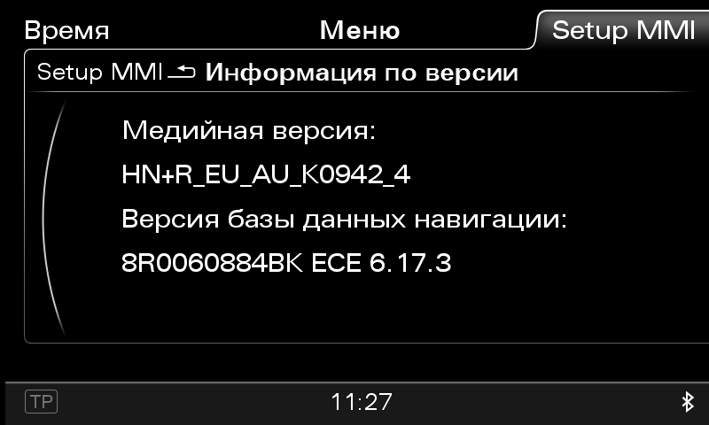 Проверяем какая версия установлена: в режиме "карусели" -> Setup MMI -> Информация по версии: