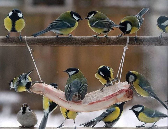 Делайте кормушки, подвешивайте сало.