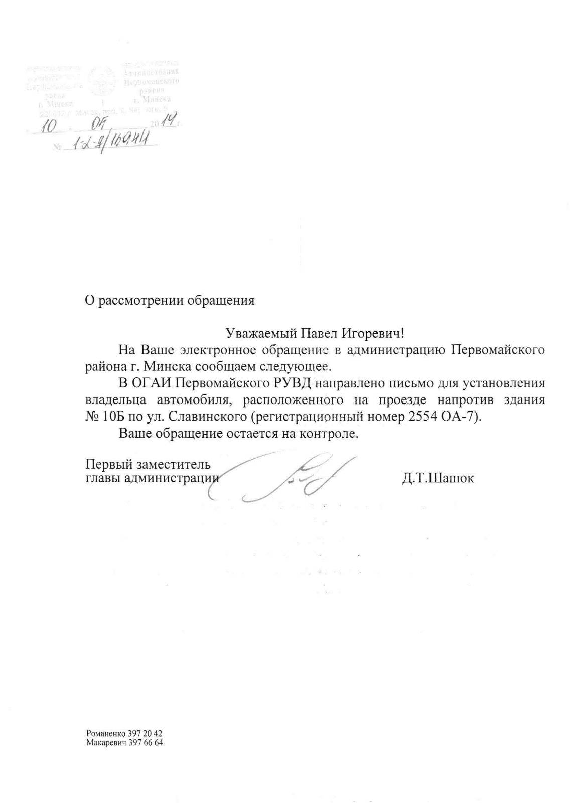 Как видно, ребята в отделе по обращению граждан Первомайского района, пусть и не так оперативно, как хотелось бы, но работают.