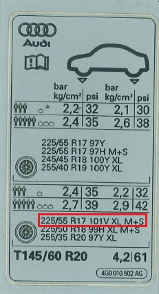 4. Типоразмер типа 205/55R16. Для каждой машины свой, но почти всегда есть недокументированные возможности впихнуть что-то другое. Еще существует в нем обозначение С и норма слойности, но это для грузовичков, а мы сейчас про легковухи пишем.