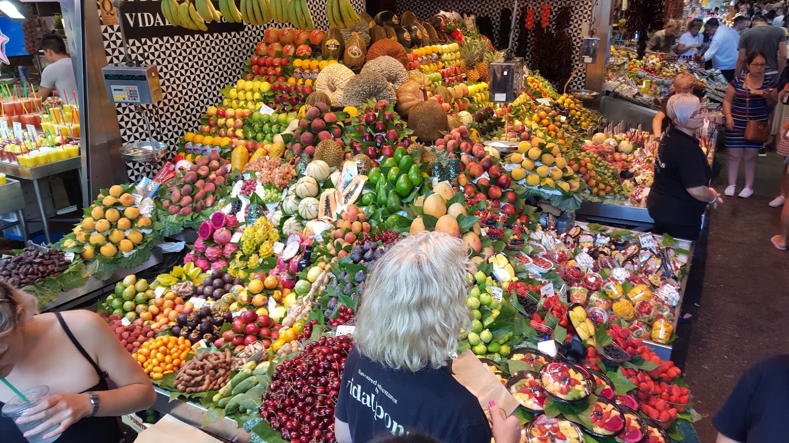 Во второй день посетили рынок "Mercado de La Boqueria". Туристическое место, всякие вкусняшки-тапасы, очень хорошие, отборные фрукты. Всё по средним ценам.