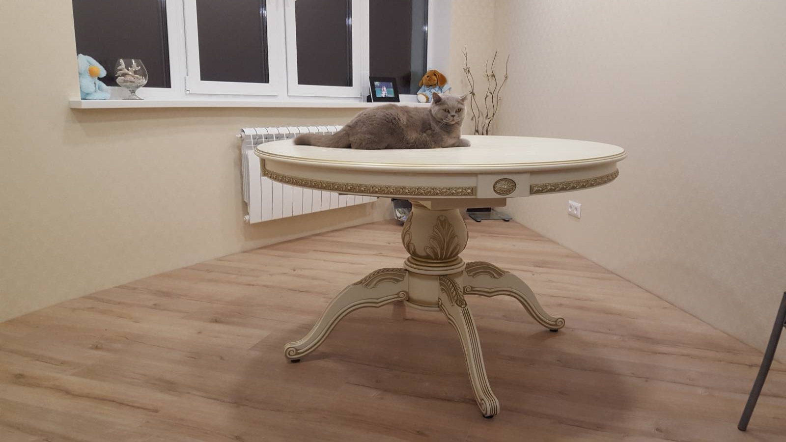 При раскладке стола сбоку крепятся декоративные элементы и штырьками должны вставлятся в сам стол. Возможно это сделано специально, что покупатель не скучал и выбрал что ему использовать - дрель, синюю изоленту или монтажную пену. Вообщем сегодня приедут представители фирмы смотреть. Везёт мне на товары из РФ или просто сами товары такие.