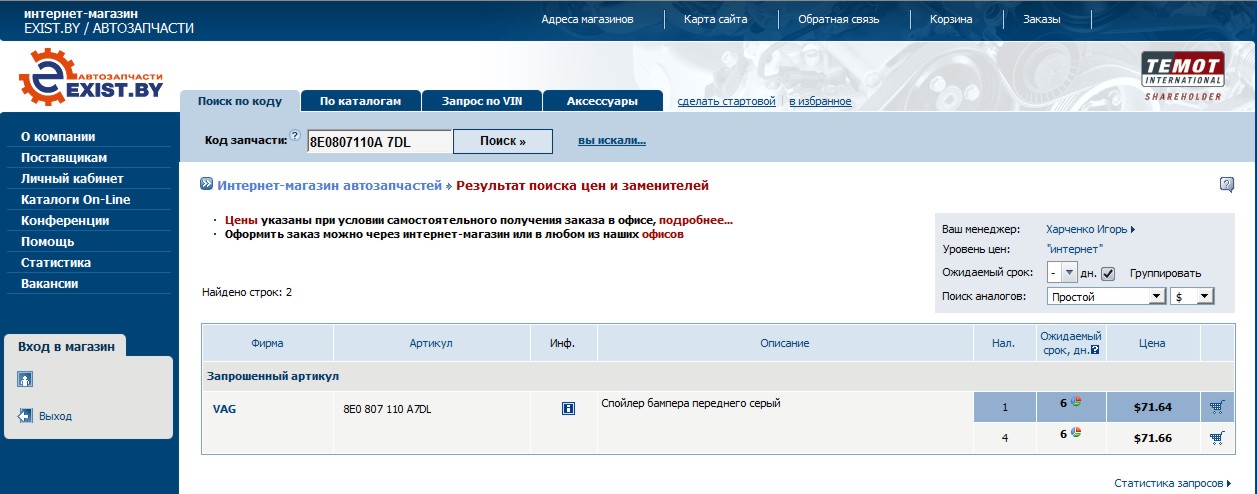 Sly, я уже много раз с этим сталкивался и неоднократно писал у Игоря в теме что для некоторых запчастей в обязательном порядке надо указывать цвет.