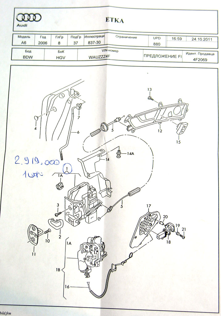 Отчеты одноклубников по ремонту замка двери Audi A6 C6: