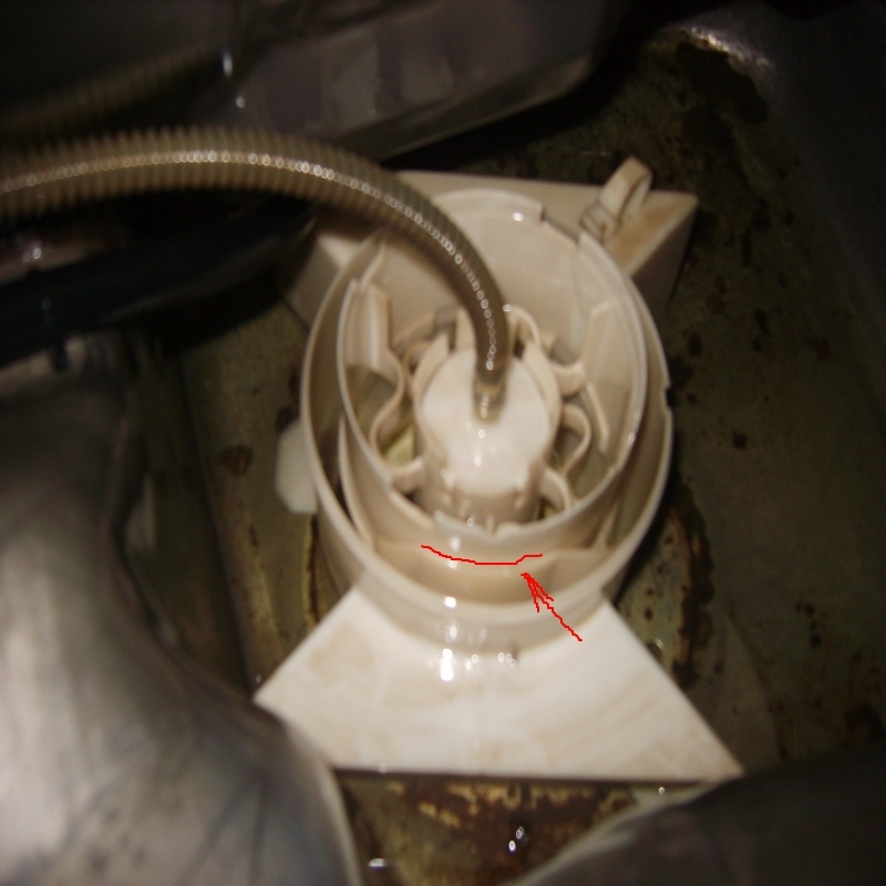 К сожалению я не сфотографировал корпус заборника сбоку чтобы были видны выемки, они находятся в обведенных областях и перед сборкой я советую подпилить немного пластмассу чтобы выступам легче было сесть на свои место. После того как подпилите сможете легко закрутить заборник на место и если понадобиться открутить, и не надо будет его подковыривать