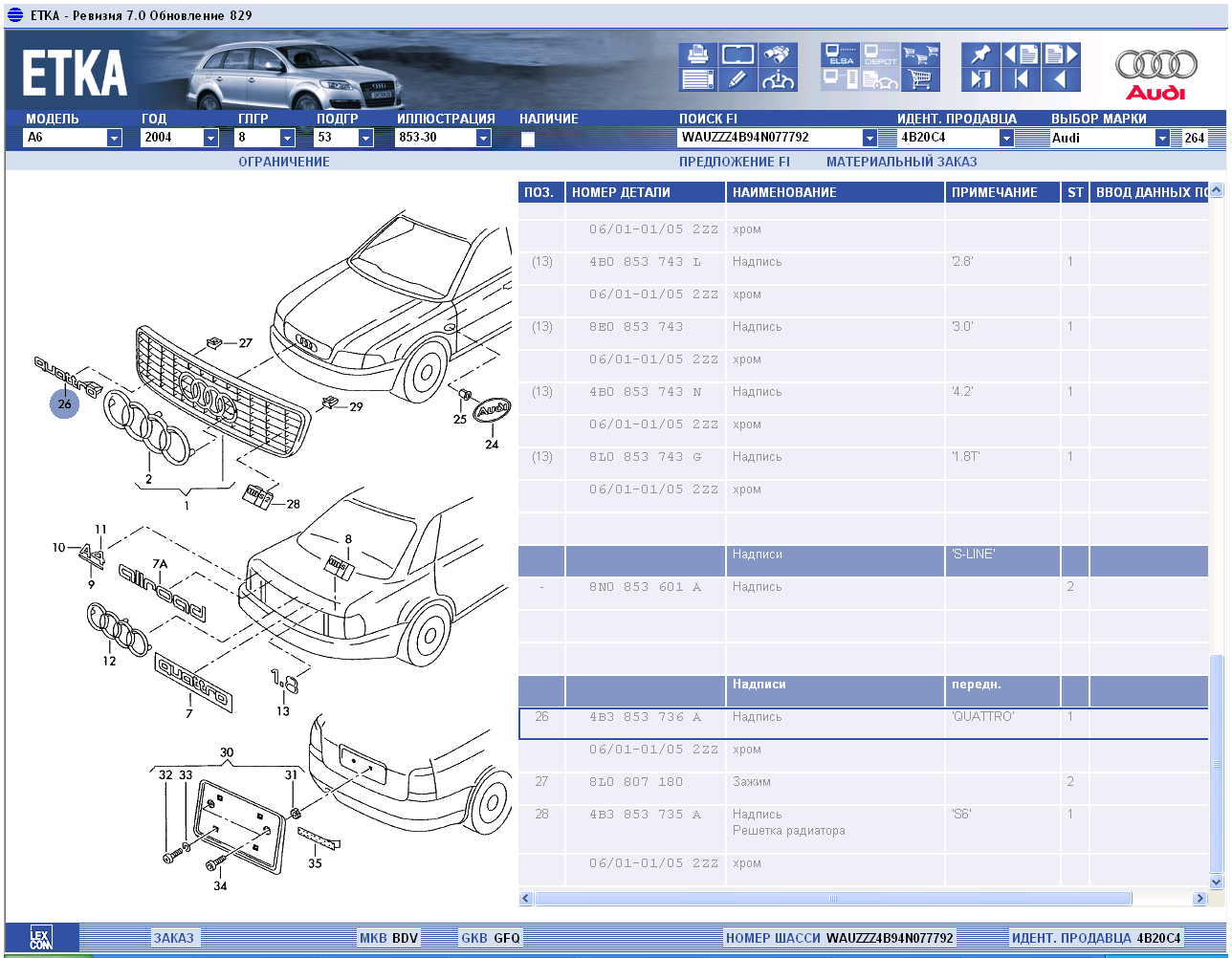Вот что есть на A6 C5 2004г.DeN!Sk@ писал(а):... там есть на переднюю решотку и S6 и S-line... на С5 кузов тока S6 что ли ??