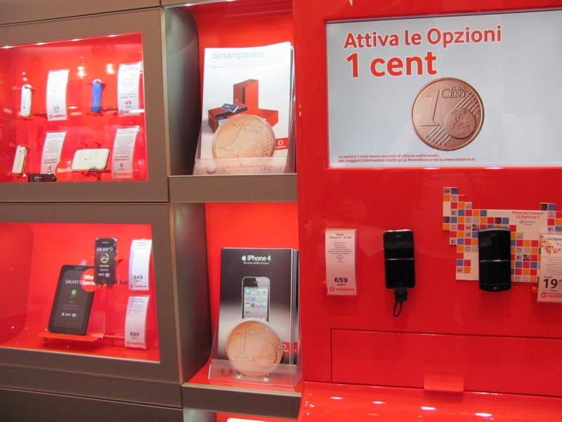Мобильная связь представлена оператором Vodafone. Сим карта с 20 евро на счете стоит 20 евро. Стоимость звонков в любом направлении по всему миру 0,1 евро/мин. Первая минута 0,28 евро. В магазинчике оператора можно помацать Iphone 4. Я оставил в нем на память пару фото. Купить разрекламированный девайс можно только с контрактом и стоит он 659 евро. :wall: