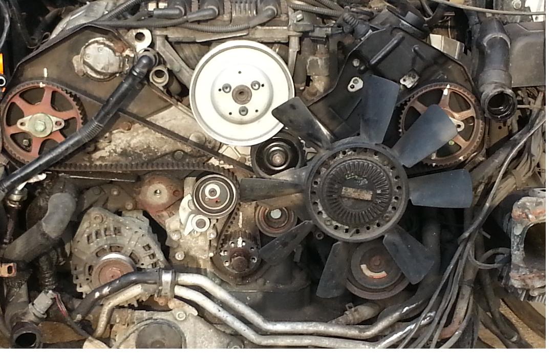 В выходной день добрались до машинки. До того как начали разбирать перед, заметили что ремень ГРМ болтается как собачье ухо, и посчитали что проблема в проскочившем ремне, но когда добрались до зубчатого шкива коленвала , выставив его по метке, увидели что и на распредвалах шкивы тоже неплохо стали по меткам.