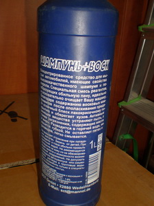 Nik_it_ON, раньше во времена советского союза, литовская автохимия считалась премиум качественными средствами по уходу за машиной. Я себе купил литовский автошампунь "Autochemija Shampoo with wax". Такая невзрачная бутылочка с жидкостью малинового цвета.